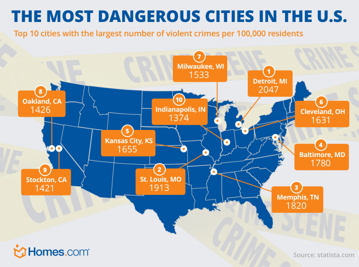For more information, see our FAQ on how we rank the most dangerous cities in America